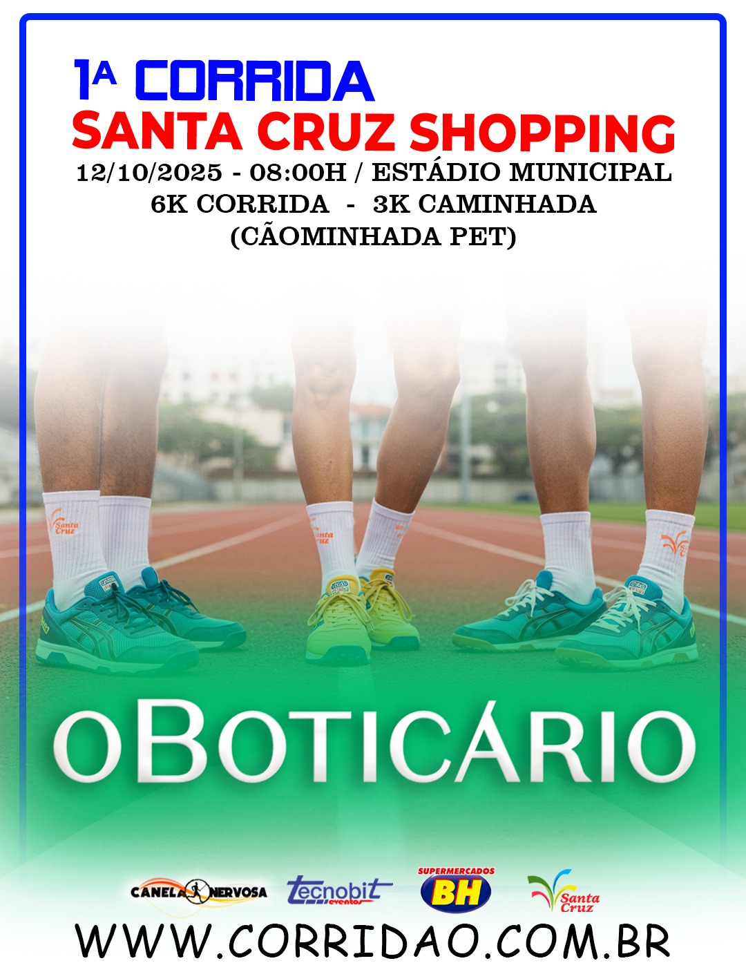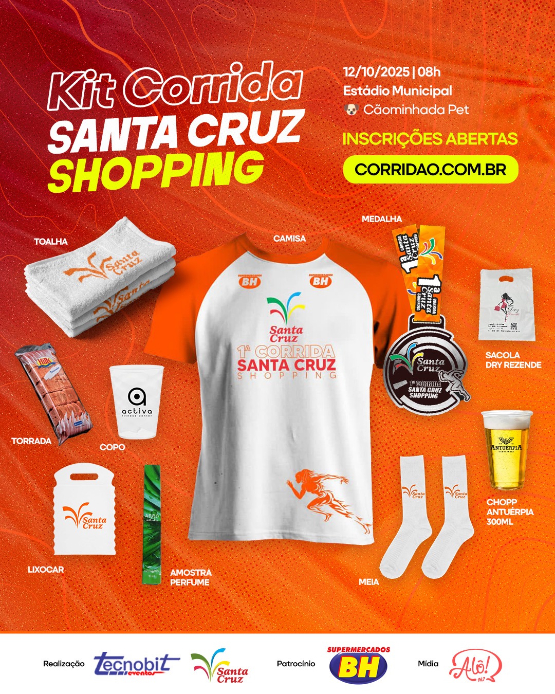 O Número de Peito e chip, será entregue no dia da corrida e o KIT ATLETA das 09 hs às 13:00 hs do dia 11/10/2025 no Shopping Santa Cruz. o Numeral deverá obrigatoriamente ser afixado na parte frontal da camisa, Caso o atleta não use corretamete o Número de Peito, perderá o direito.