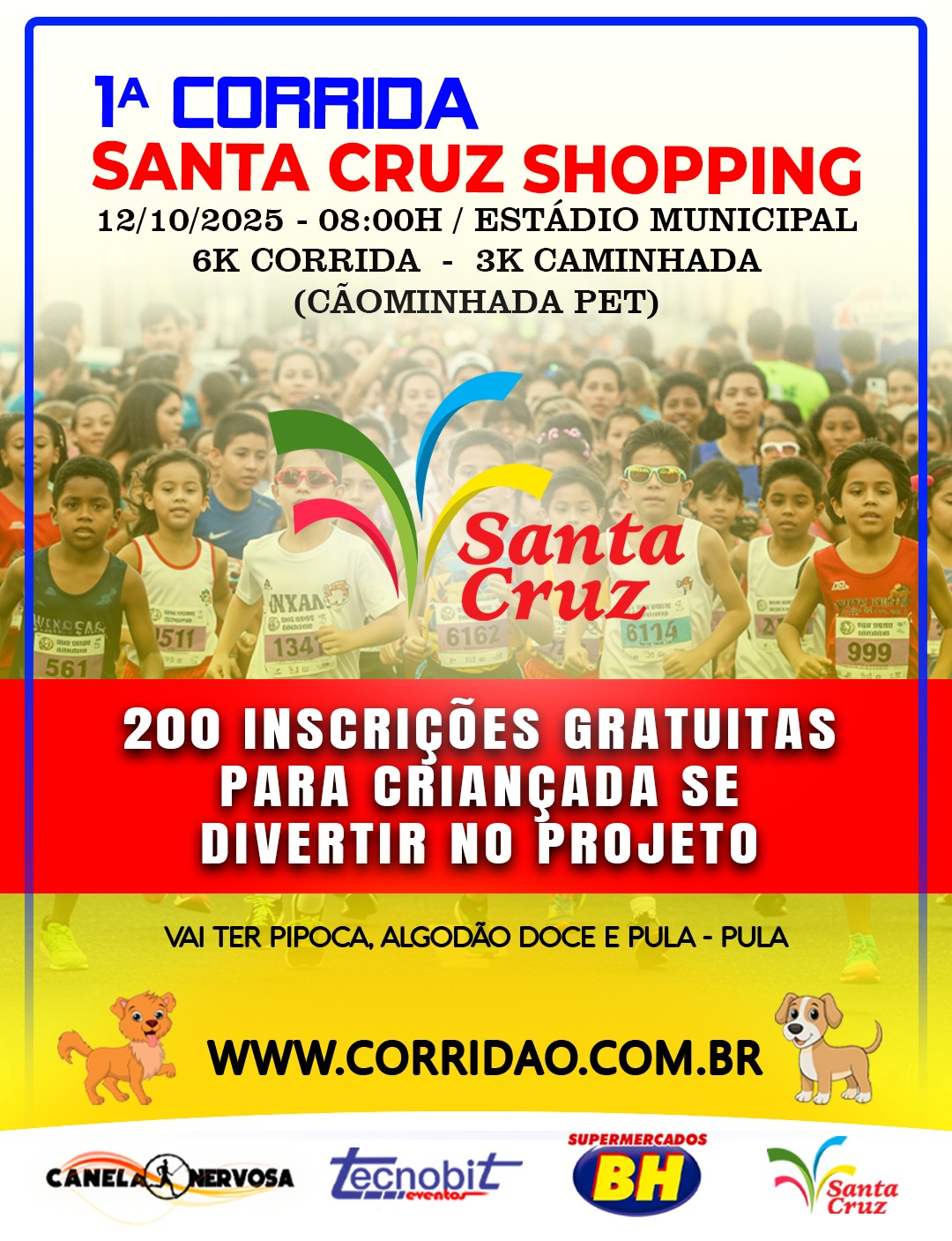 Inscrições estão sendo realizadas no site www.corridao.com.br ou Montenegro zap 98892-4887 ou Shopping Santa Cruz loja 1325 TECNOBIT INFORMÁTICA ou Loja Terrabike Centro.