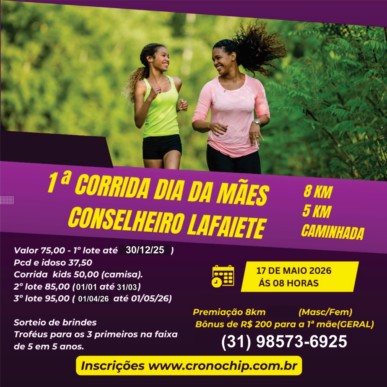 👧 Corrida Infantil (lote único): R$ 50,00 + taxa do site