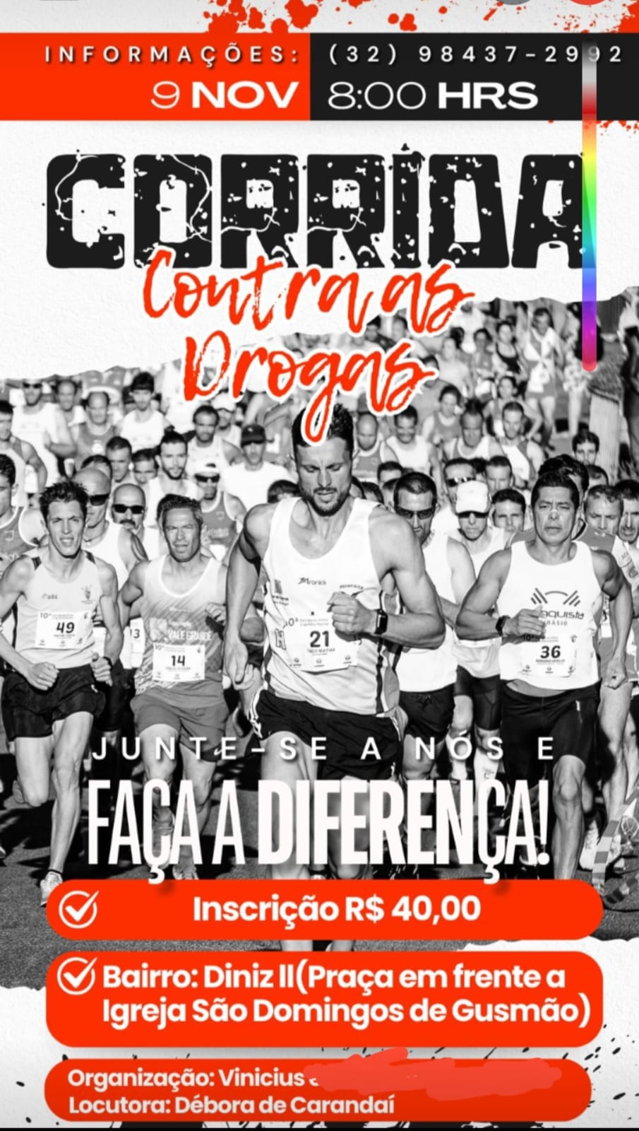 O Número de Peito com o CHIP será entregue a partir das 7 horas do dia do evento e deverá obrigatoriamente ser afixado na parte frontal da camisa, Caso o atleta não use corretamete o Número de Peito com o Chip, perderá o direito a reclamação da contagem de seu tempo e poderá ser eliminado da prova.