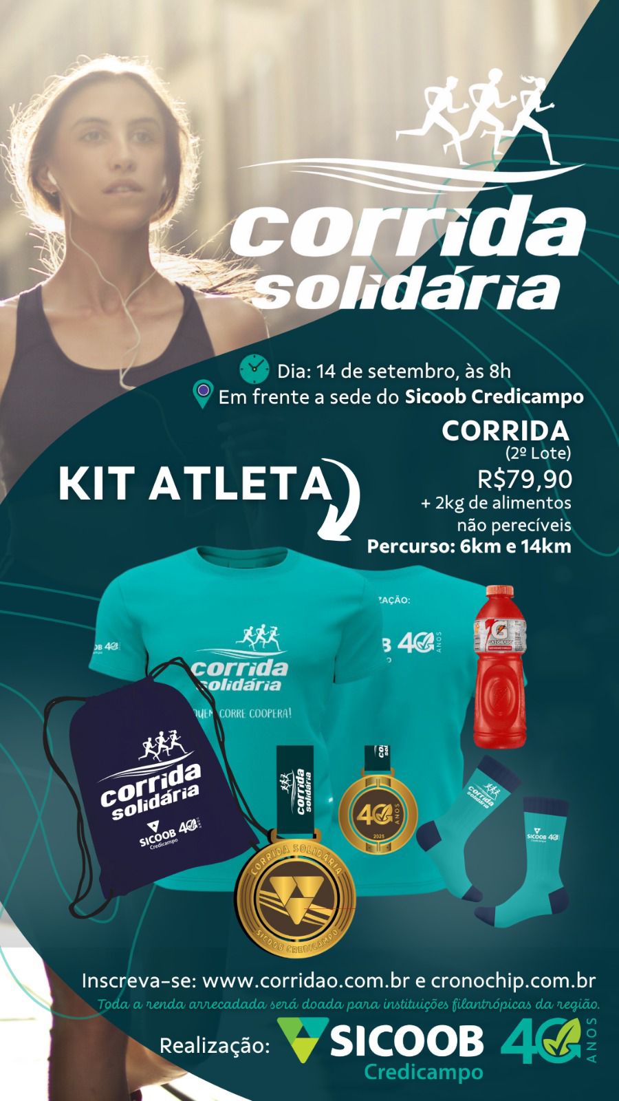 CORRIDA - 1º LOTE: R$ 69,90 + 2kg de alimento não perecível (até 06/08/2025)