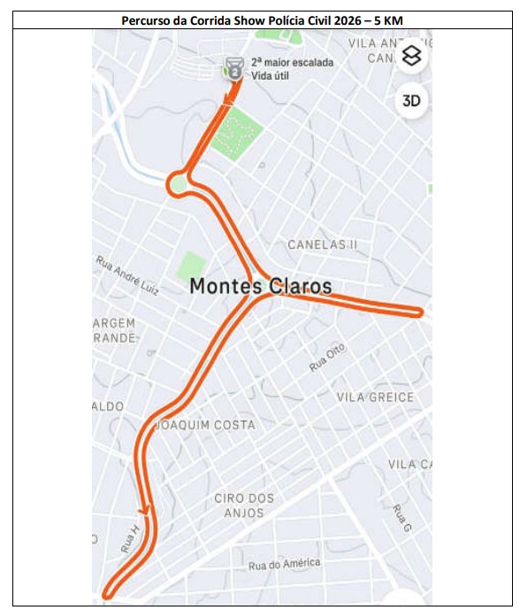 Percurso da Corrida Show Polícia Civil 2026 – 5 KM