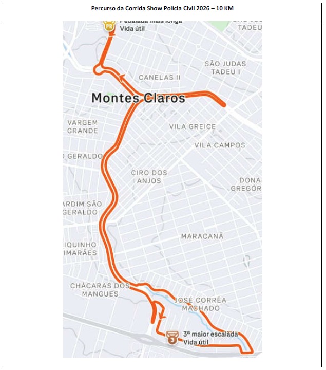 Percurso da Corrida Show Polícia Civil 2026 – 10 KM