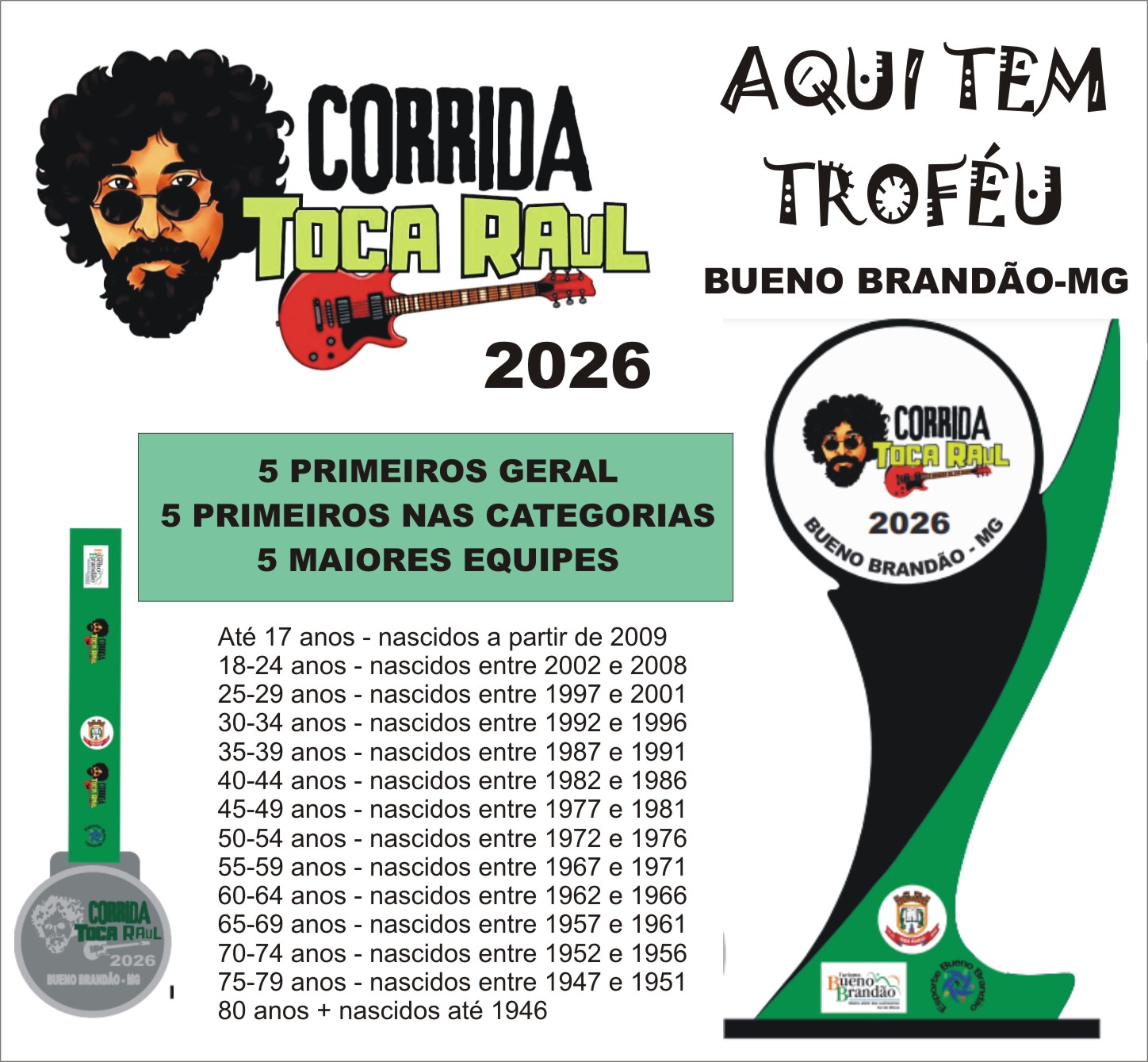 A premiação dos 7 KM TOCA RAUL BUENO BRANDÃO será assim distribuída: