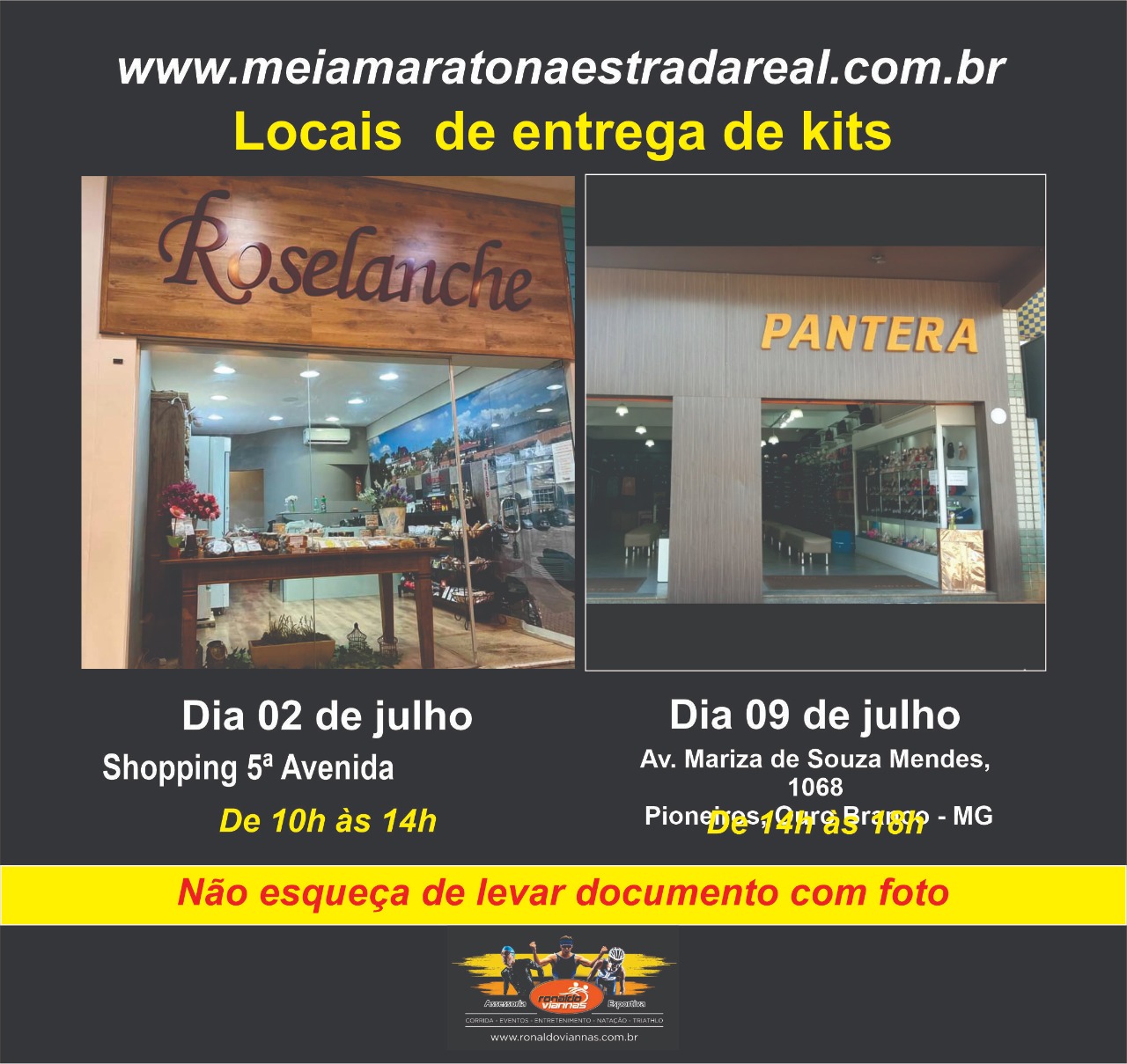 • Kit: CAMISA + NÚMERO DE PEITO + CHIP + VALE JANTAR